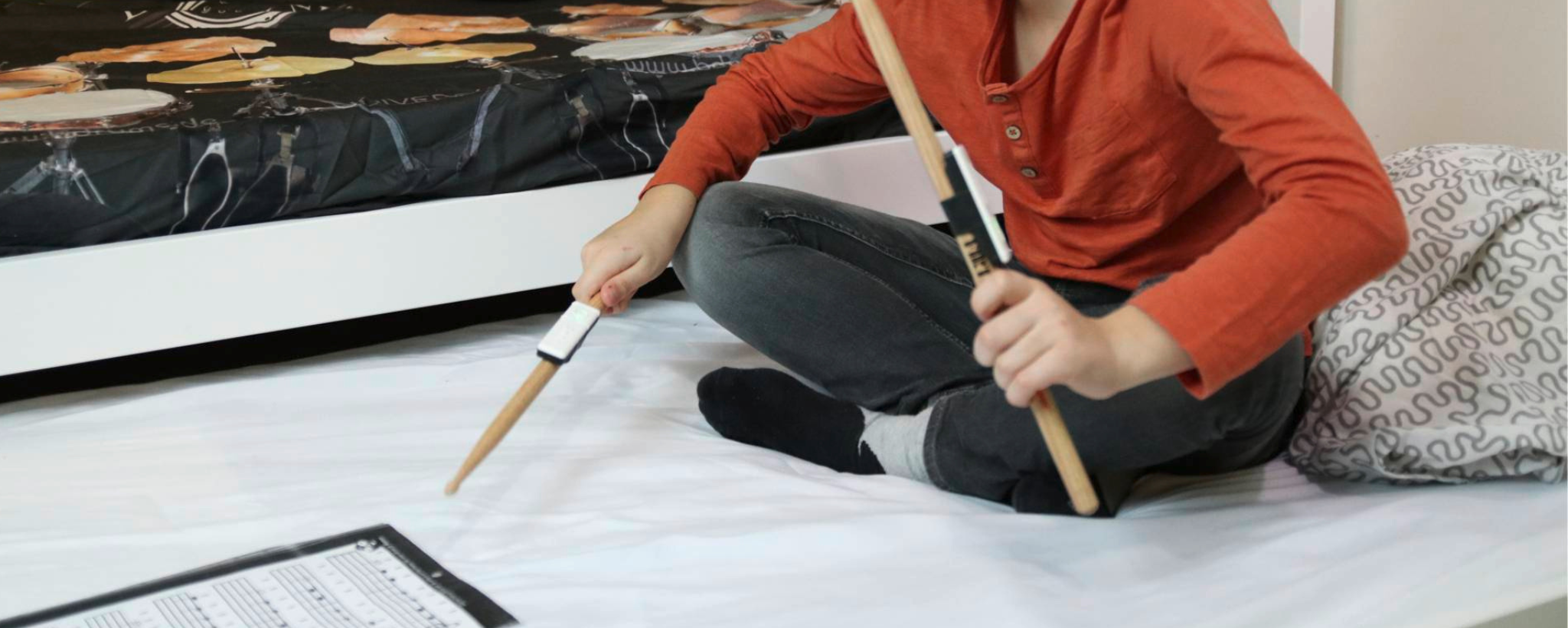 Dank Senstroke ist das Schlagzeug für alle zugänglich. Montiere die Sensoren auf dem Schlagzeug und verwende die APP mit Kopfhörern.