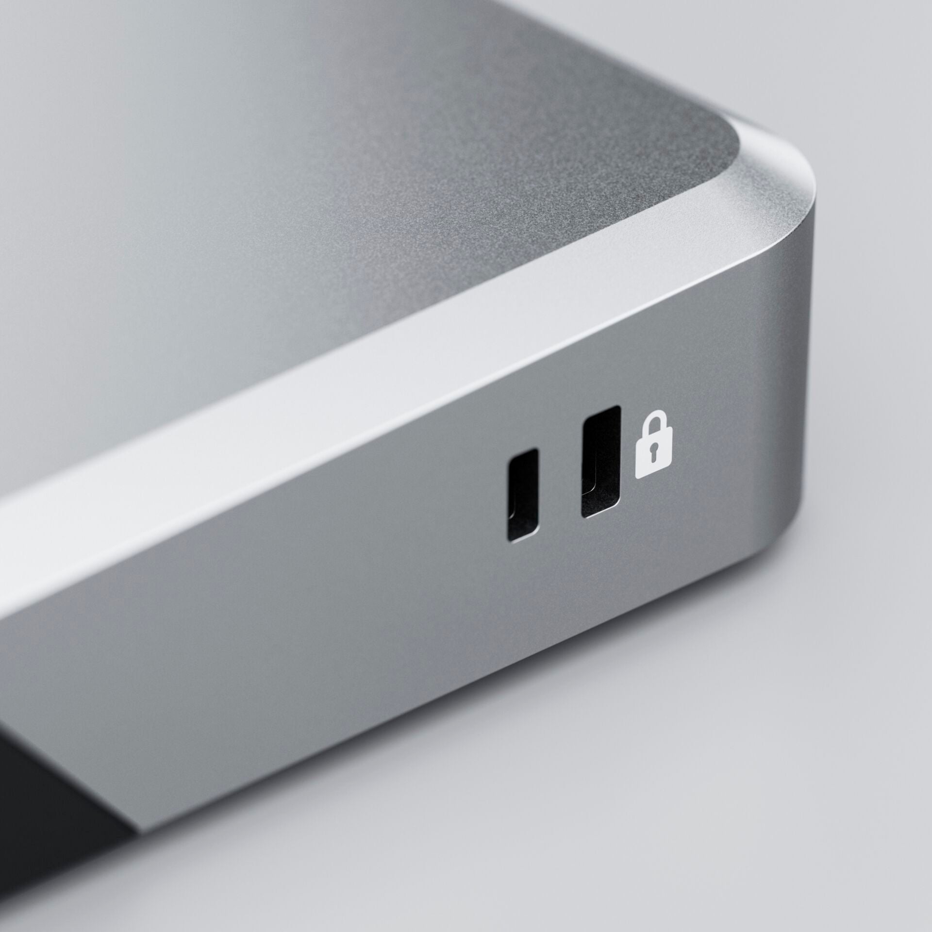 - Integrierte Anschlussmöglichkeit für Sicherheitsschloss