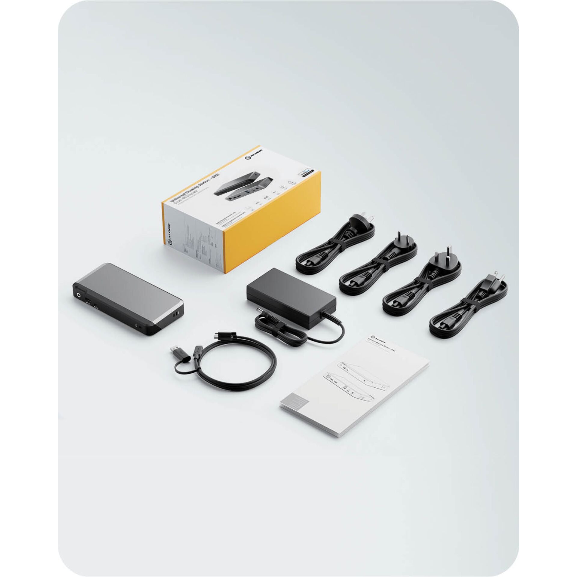 - Lieferumfang: 1x USB-C Docking Station, 1x USB-C- zu USB-C-Kabel mit USB-A-Adapter, 1x 135 Watt Netzteil, 1x US-Netzkabel, 1x EU-Netzkabel, 1x UK-Netzkabel, 1x AU-Netzkabel, 1x Bedienungsanaleitung