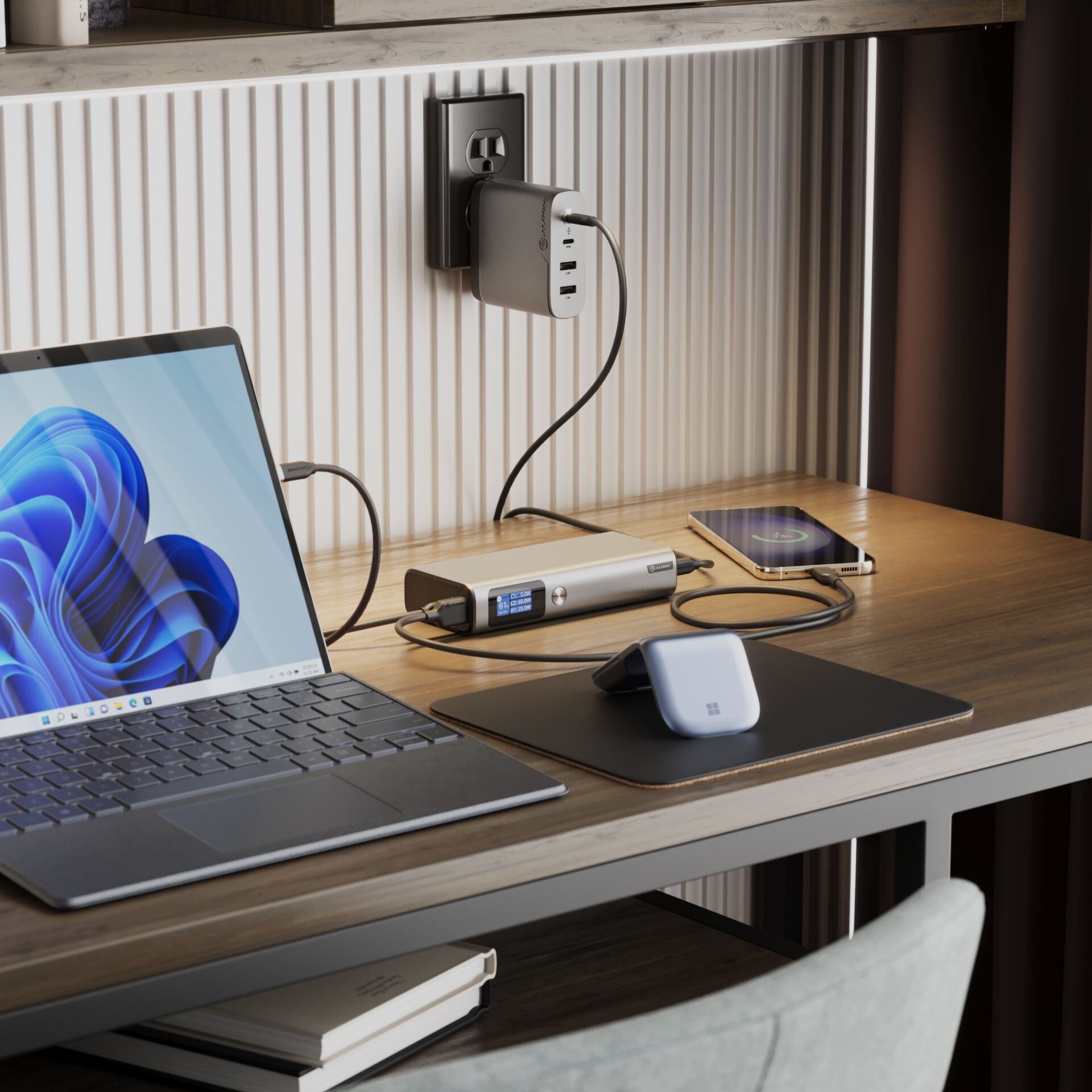 • Output (Single) 2x USB-C mit max. 100 Watt, geeignet zum Laden von Laptops und Tablets, und max. 60 Watt, geeignet zum Laden von Smartphones oder Konsolen,