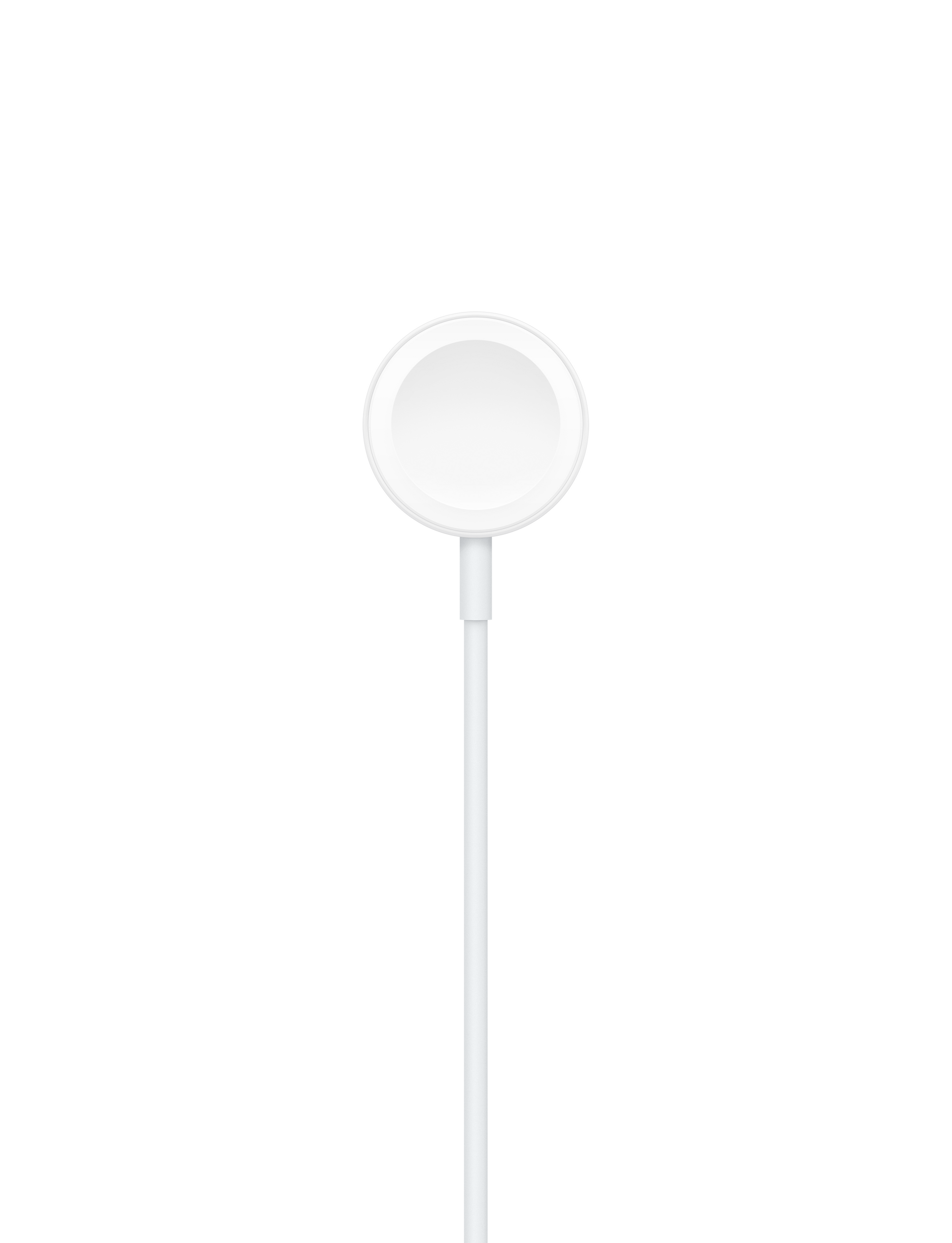 So leicht lädst du deine Apple Watch. Halte einfach den Connector in die Nähe der Rückseite deiner Watch und der Magnet setzt sich automatisch richtig darauf. Es ist ein vollversiegeltes System ohne freiliegende Kontakte, das kleine Fehler beim Auflegen der Apple Watch verzeiht.