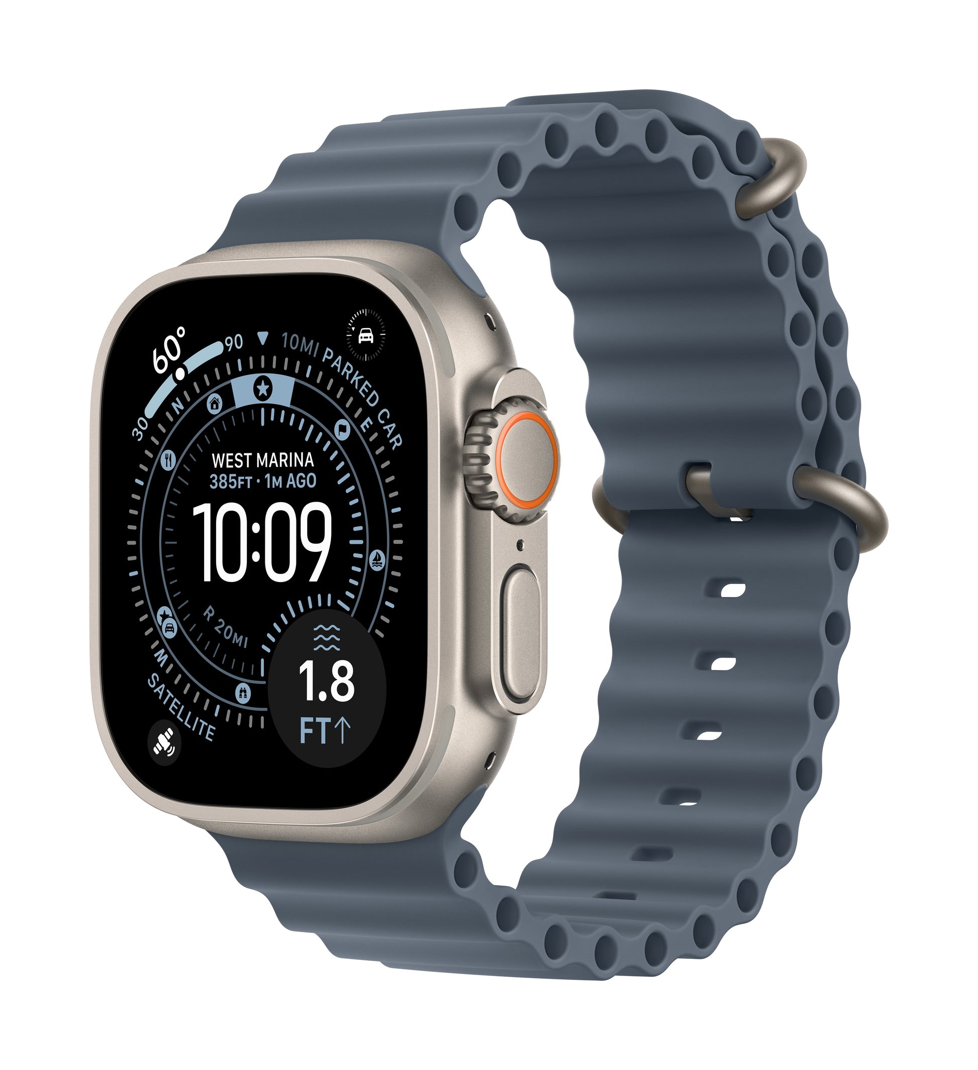 Apple Watch Ultra 3 GPS + Cellular 49mm Natürliches Titan Case mit Ankerblau Ocean Band
