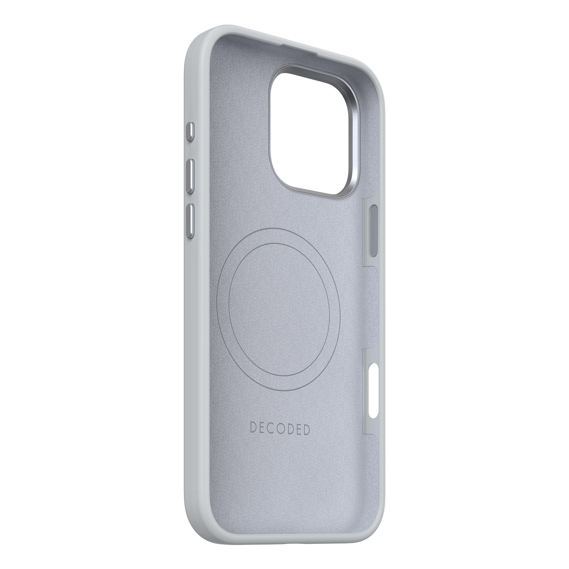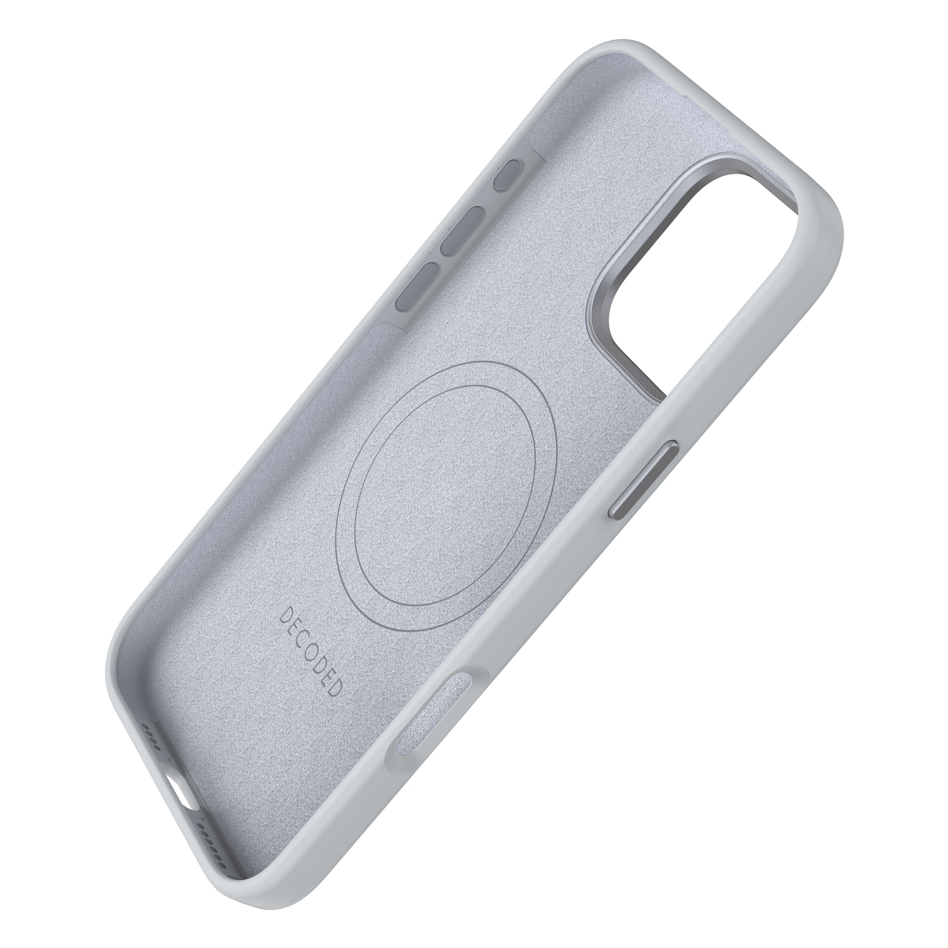 Das Decoded AntiMicrobial Silicone Backcover bietet eine Silikonhülle aus hochwertigem antimikrobiellem Polyurethan, und sorgt für ein besonders guten Halt in der Hand. Die Schutzhülle ist mit einer Polycarbonat-Unterkonstruktion ausgestattet, um das Smartphone vor Stößen und Stürzen zu schützen. Für maximalen Schutz verfügt die Silikonhülle über passgenaue Aussparungen und eine vollständig geschlossene Unterseite, die gleichzeitig einen festen Halt der Hülle gewährleistet. Ein erhöhter Rahmen vermeidet Kratzer auf dem Bildschirm des iPhones. Außerdem ist das Material der Hülle mit einer antimikrobiellen Formel ausgestattet, die Bakterien auf der Handyhülle zerstört und es medizinisch sauber hält. Im Inneren ist das Case mit Mikrofaser ausgekleidet und verhindert so oberflächlichen Einflüsse am Gerät. Der breite Metallring mit markeneigenem Schriftzug dient neben dem optischen Highlight dem besonderen Schutz der Kameralinsen. Da die Knöpfe ebenfalls aus Metall hergestellt sind, wird eine präzise Nutzung und längere Haltbarkeit ermöglicht. Das Silicone Backcover Case ist MagSafe-kompatibel und ermöglicht mittels des integrierten Magnets eine unkomplizierte Nutzung und Ausrichtung von weiterem MagSafe-Zubehör.