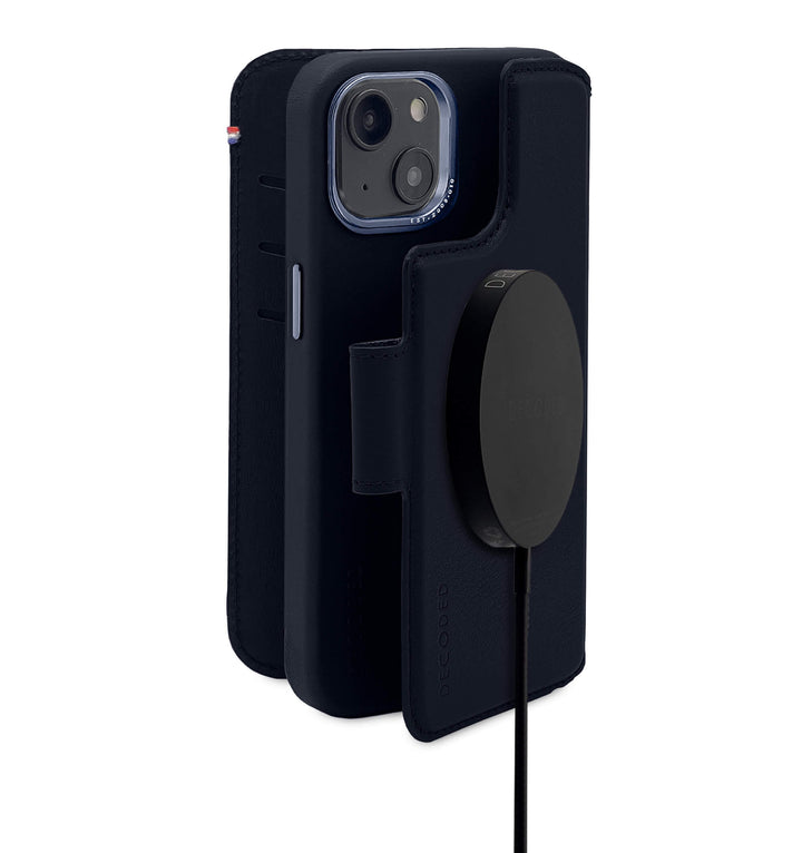 The DECODED 2-in-1 Detachable Wallet suitable for iPhone 14 Plus is multifunctional in use and therefore equipped with all conveniences. The Back Cover is easy to detach and attach to the Wallet Case by means of a magnets. So you have your most important cards always at hand, but is also only the Back Cover to use.The DECODED leather Detachable Wallet offers optimal protection against bumps and scratches without the design of your iPhone 14 Plus short. The unique 2-in-1 design offers great flexibility in use. The Back Cover is finished with two additional magnets for a perfect and secure alignment, allowing you to quickly and easily attach the back cover to the included Wallet. You quickly and easily switch from Wallet Case to Back Cover Case when you need to charge or make a call. This full case features premium ECCO aniline leather. The wallet offers recommended space for 3 cards.The integrated MagSafe magnets in the case extend the operation of your iPhone's MagSafe which ensures optimal placement of your iPhone in the Back Cover and supports the convenience of MagSafe accessories such as chargers, desk stands and card sleeves. The perfectly aligned magnets make wireless charging faster and easier than ever before. And when it’s time to charge, just leave the case on your iPhone and snap on your MagSafe charger, or set it on your Qi-certified charger. The wallet part doesn't have to be removed for charging.