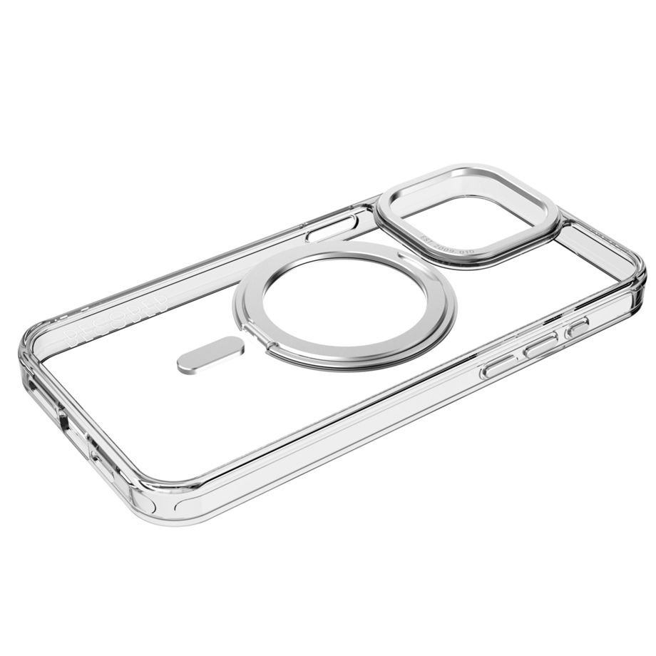Ein schlichter, minimalistischer Look für das iPhone: Diese transparente Hülle aus recyceltem Polycarbonat schützt das iPhone zuverlässig und bringt gleichzeitig das Design des Smartphones zur Geltung. Dabei sticht als besonderes Highlight der MagSafe-Ring heraus, der ausgeklappt und im beliebigen Winkel gedreht werden kann. Der integrierte Stand ist aus stabilem und langlebigem Aluminium hergestellt. Ein erhöhter Rand bewahrt das Display vor Kratzern und das stoßsichere TPU schützt das iPhone bei Stößen und Stürzen. Ein anthrazitfarbener, metallener Kameraring dient als optisches Highlight und schützt gleichzeitig die Kamera des iPhones. Dank dem integrierten Loop Stand ist die Schutzhülle MagSafe-kompatibel und lässt sich unkompliziert und sicher an MagSafe-Accessoires ausrichten. Die Metallknöpfe sorgen für eine besonders gute Handhabung.