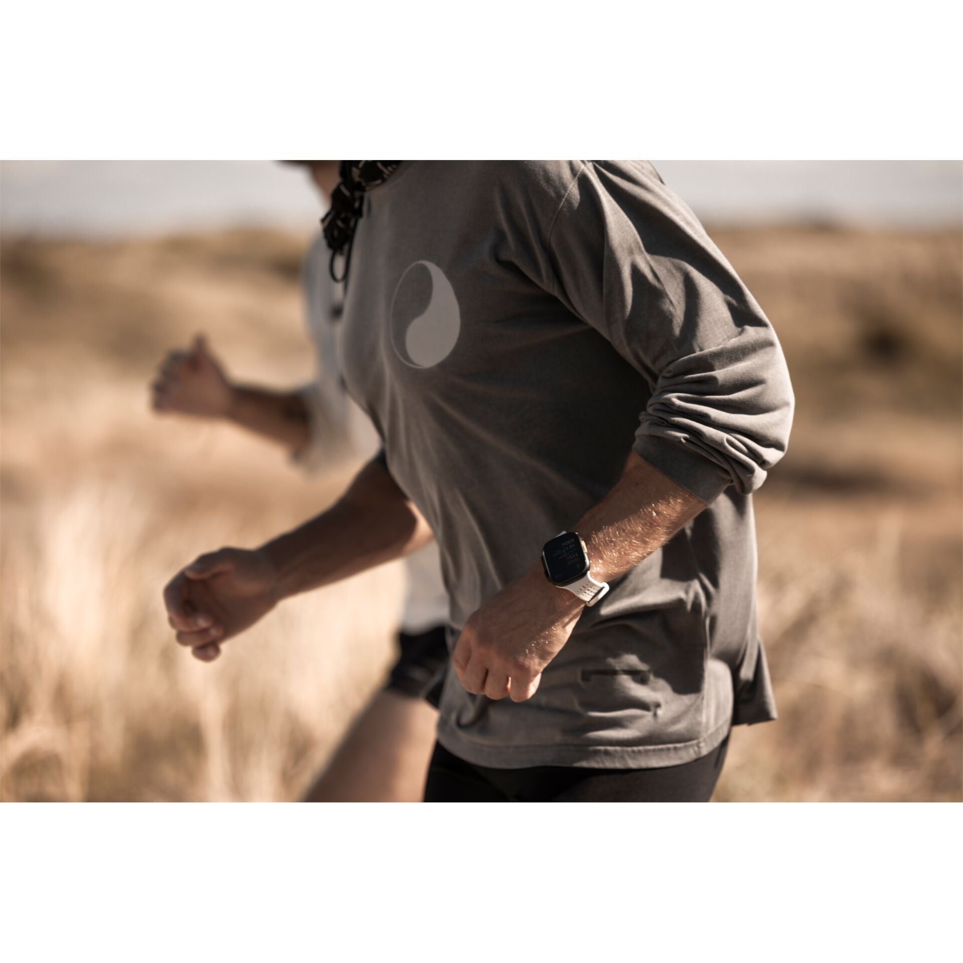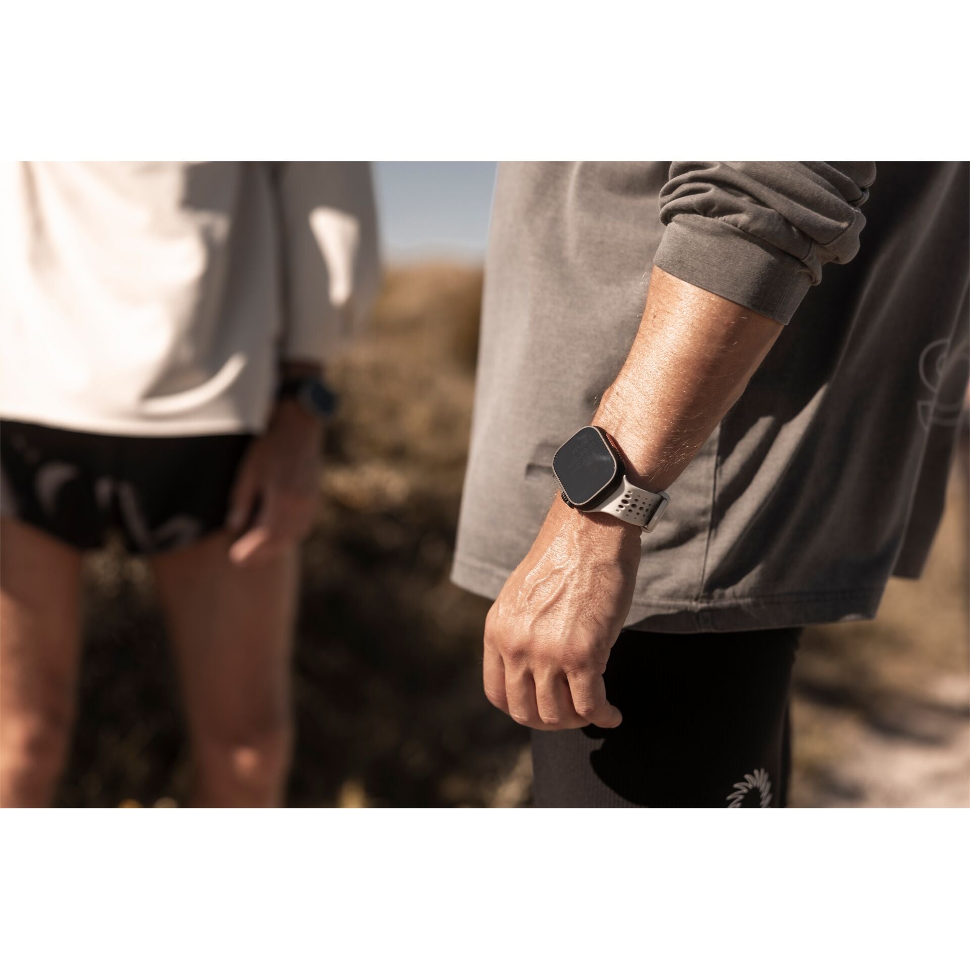 Gefertigt aus Grip O™, einem leistungsfähigen Hochreibungswerkstoff mit schnelltrocknender Oberfläche, bietet das Armband selbst bei intensiven Workouts oder unter Schweißbelastung rutschfeste Kontrolle und eine angenehme Haptik. Ein perforiertes Banddesign mit präzisen Cut-outs reduziert den Hautkontakt und verbessert die Belüftung, sodass das Band auch lange komfortabel getragen werden kann.