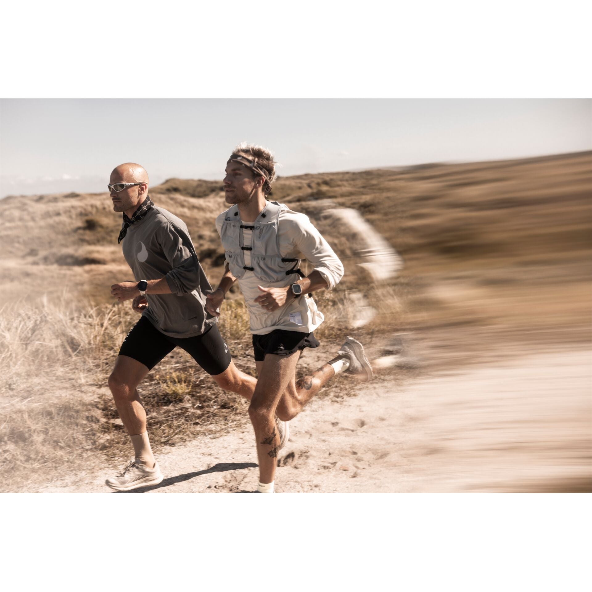 Für sicheren Sitz sorgt ein mechanischer Dornverschluss, der das Band zuverlässig spannt – ohne dass während des Trainings nachjustiert werden muss. Ein Loop Keeper mit Stahlelement fixiert das Bandende stabil und verhindert ein Verrutschen. Ergänzt wird das Setup durch passgenaue Slide-in-Lugs, die die Apple Watch sicher halten und seitliche Bewegung vollständig ausschließen. Die Sensorfunktionen der Uhr bleiben dabei uneingeschränkt nutzbar.