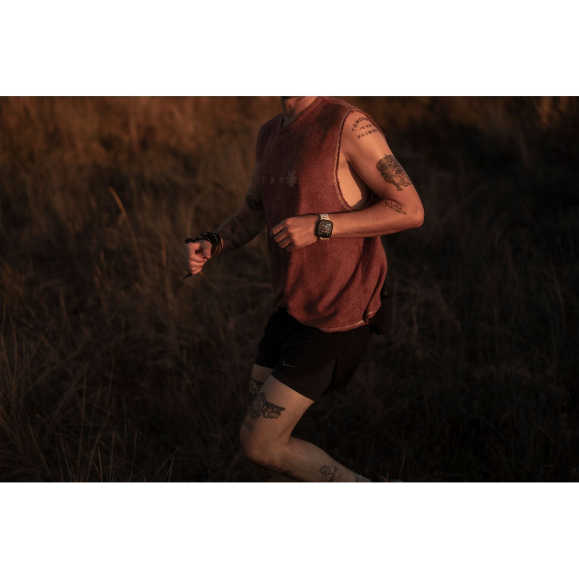 Für sicheren Sitz sorgt ein mechanischer Dornverschluss, der das Band zuverlässig spannt – ohne dass während des Trainings nachjustiert werden muss. Ein Loop Keeper mit Stahlelement fixiert das Bandende stabil und verhindert ein Verrutschen. Ergänzt wird das Setup durch passgenaue Slide-in-Lugs, die die Apple Watch sicher halten und seitliche Bewegung vollständig ausschließen. Die Sensorfunktionen der Uhr bleiben dabei uneingeschränkt nutzbar.