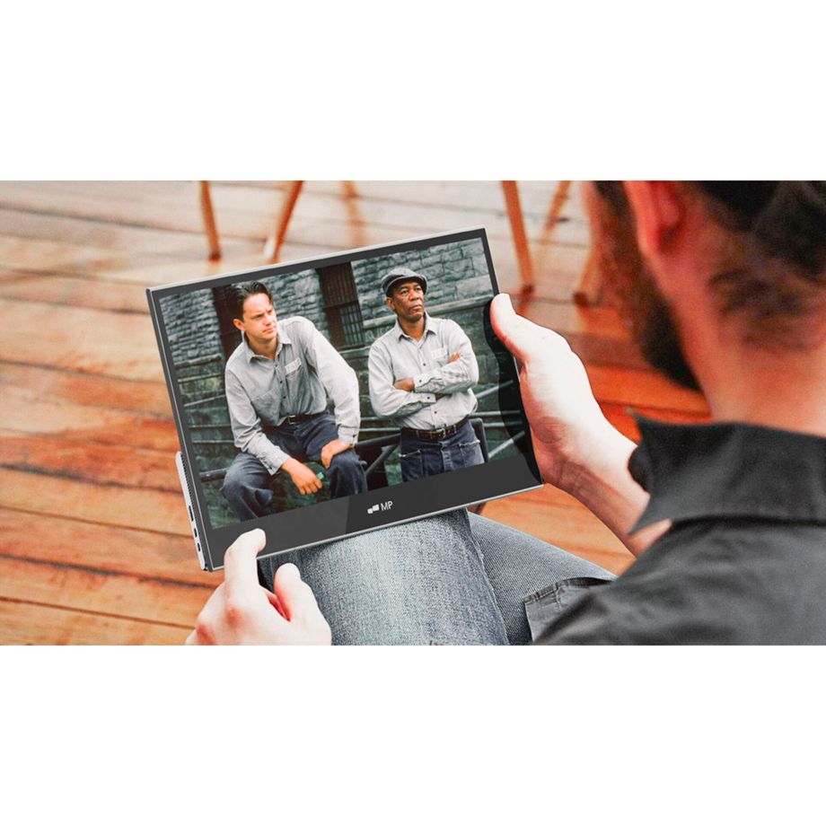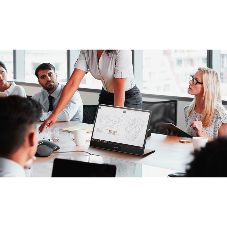 Das tragbare 16-Zoll-Zubehör bietet eine Auflösung von 1080 Pixel und ergänzt die Arbeitsfläche des Laptops durch einen zweiten Bildschirm. Dank Plug-and-Play-Technologie wird ganz ohne Treiberinstallation eine Bildschirmübertragung ermöglicht. Die Verbindung zum Endgerät über den USB-C- oder Mini-HDMI-Anschluss untermalt die flexible Nutzung und lässt die leistungsstarke LCD-Technologie der Bildschirmerweiterung glänzen. Das Farberlebnis kann dank der einstellbaren Helligkeitsstufen und Farbtemperaturen individuell an die jeweilige Arbeitsumgebung angepasst werden. Ein integrierter Dual-Sourround-Lautsprecher sorgt für hochwertigen Klang.