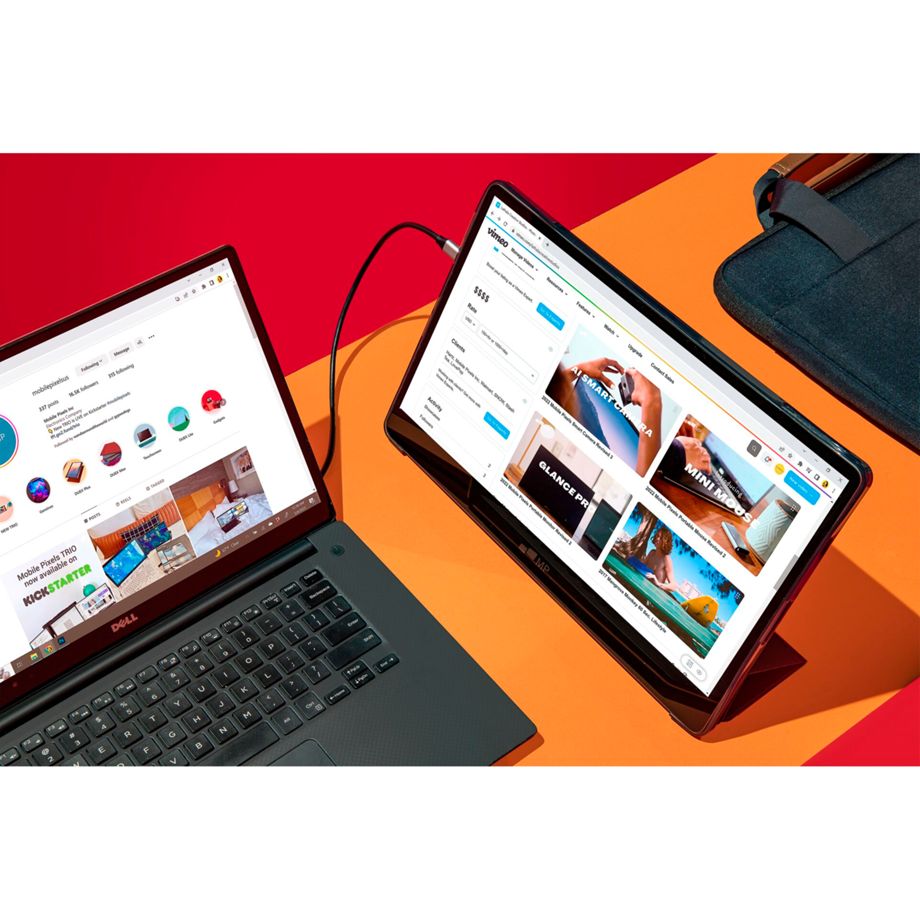 Der hochauflösende Bildschirm Glance Plus von Mobile Pixels lässt die mobile Produktivität mit Leichtigkeit zum Multitasking-Erlebnis werden. Mit Hilfe des integrierten Ständers wird der Laptop mühelos und leicht zum mobilen Arbeitsplatz erweitert. Das OLED-Display bietet mit einer hochauflösenden Bildschirmleistung eine ideale und moderne Ergänzung für den Arbeitsplatz von unterwegs. Der leistungsstarke Bildschirm Glance Plus von Mobile Pixels kombiniert ein schlankes Design mit Mobilität und Komfort.
