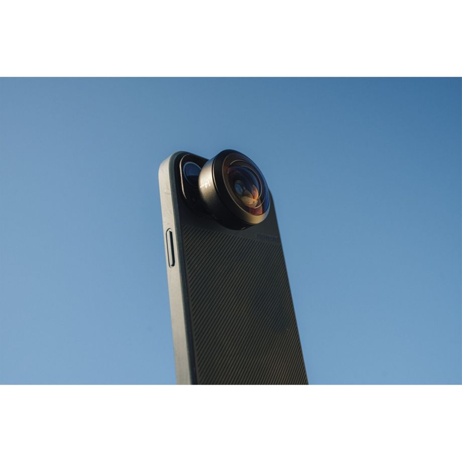 Das 14mm-Fisheye-Objektiv von Moment ist ein Kameraobjektiv für Smartphones und kann in Kombination mit separat erhältlichem Zubehör am Smartphone angebracht werden. Das Superweitwinkelobjektiv bietet ein beeindruckendes 200-Grad-Sichtfeld und erzeugt somit ein 30% breiteres Bild als das, welches bei eingebauten Ultraweitwinkel-Smartphone-Kameras mit 120 Grad zur Verfügung steht. Der charakteristische Fisheye-Effekt wird durch die einzigartige Konstruktion des Objektivs erzeugt: Es biegt und krümmt das einfallende Licht, was zu einer tonnenförmigen Verzeichnung führt. Mit Hilfe des Fisheye-Objektivs können größere Ausschnitte des Motivs aufgenommen werden, weswegen es ideal für Landschaftsfotografie, Aufnahmen von Architektonischen Details oder die Gestaltung eines einzigartigen visuellen Stils ist. Das Objektiv ermöglicht auf Grund der Nutzung des gesamten Bildsensors (Vollformat) ein Bild ohne dunkle Ecken oder Vignettierung.