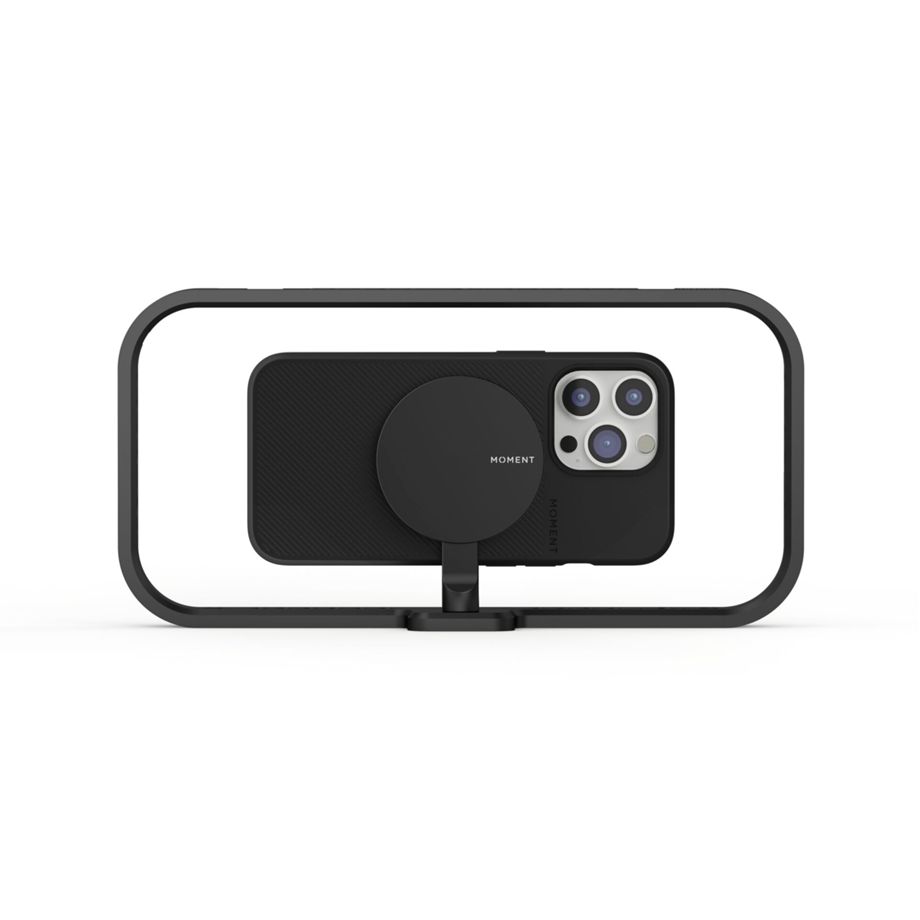 - MagSafe-fähige iPhones können unmittelbar am Magneten angebracht und fixiert werden (nicht MagSafe-fähige Smartphones können mit Hilfe des separat erhältlichen Stick-On-Adapters von Moment nachträglich mit der Magnetfunktion ausgestattet werden)