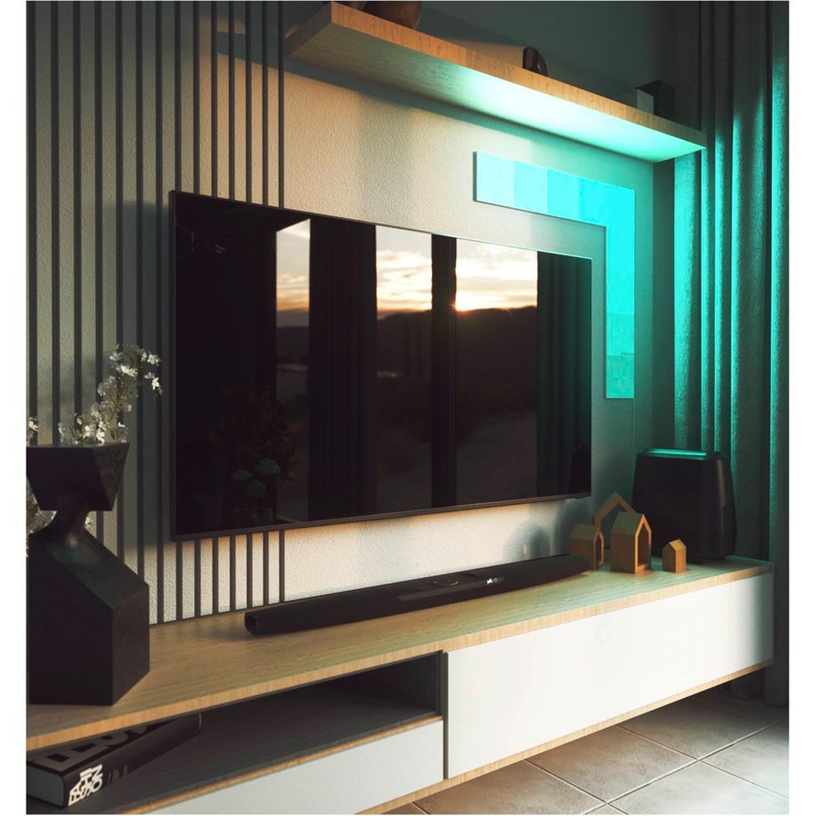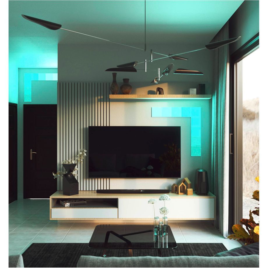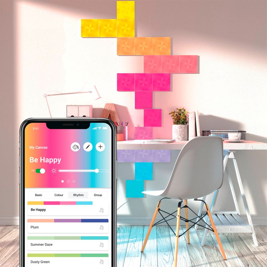 Nanoleaf Canvas ist ein smartes Beleuchtungssystem, das ein gänzlich neues Lichterlebnis schafft: Es reagiert in Echtzeit auf Berührungen, auf Musik und ist modular. Ob eine ganze Wand mit den smarten Lichtquadraten bedeckt oder ein persönliches künstlerisches Meisterwerk geschaffen wird – individuell für jeden Raum lässt sich das Wunschdesign durch ein modulares Stecksystem kreativ und einfach umsetzen. Das Lichtsystem ist mit Weißlicht und einer Auswahl von über 16 Millionen Farben ausgestattet und kann so an die verschiedenen Verwendungszwecke und Tageszeiten angepasst werden. Die Steuerung erfolgt per App, direkt über die Steuereinheit oder Sprachassistenten wie Siri, Google oder Alexa. Außerdem reagieren die Paneele auf Berührungen und dank eingebauter Audiosensoren sogar auf den Rhythmus von Musik. Auch ohne WLAN und die Nanoleaf-App lassen sich eine große Auswahl an vorprogrammierten Farbszenen über die Steuereinheit einstellen.