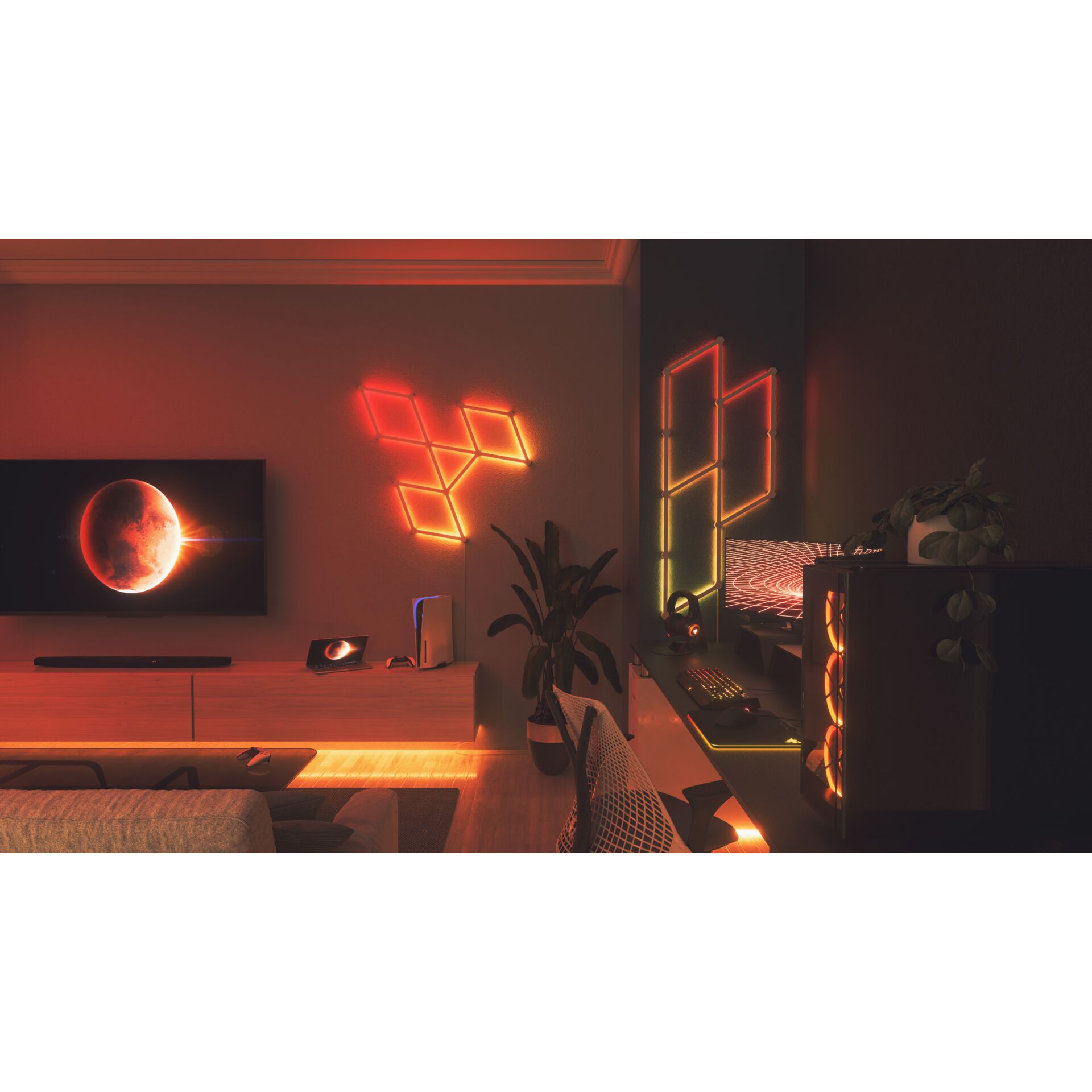 Die Nanoleaf Lines sind smarte LED-Lichtleisten mit Hintergrundbeleuchtung, die sich durch ein modulares System zu individuellen Designs miteinander verbinden lassen. So wird durch die Auswahl von über 16 Millionen Farben jeder Raum mit farbwechselnden Lichtshows zum Leben erweckt und auf einzigartige Weise beleuchtet. Die Steuerung der Lines erfolgt per Nanoleaf-App, direkt über die integrierte Steuereinheit oder über Sprachassistenten wie Siri, Google und Alexa.