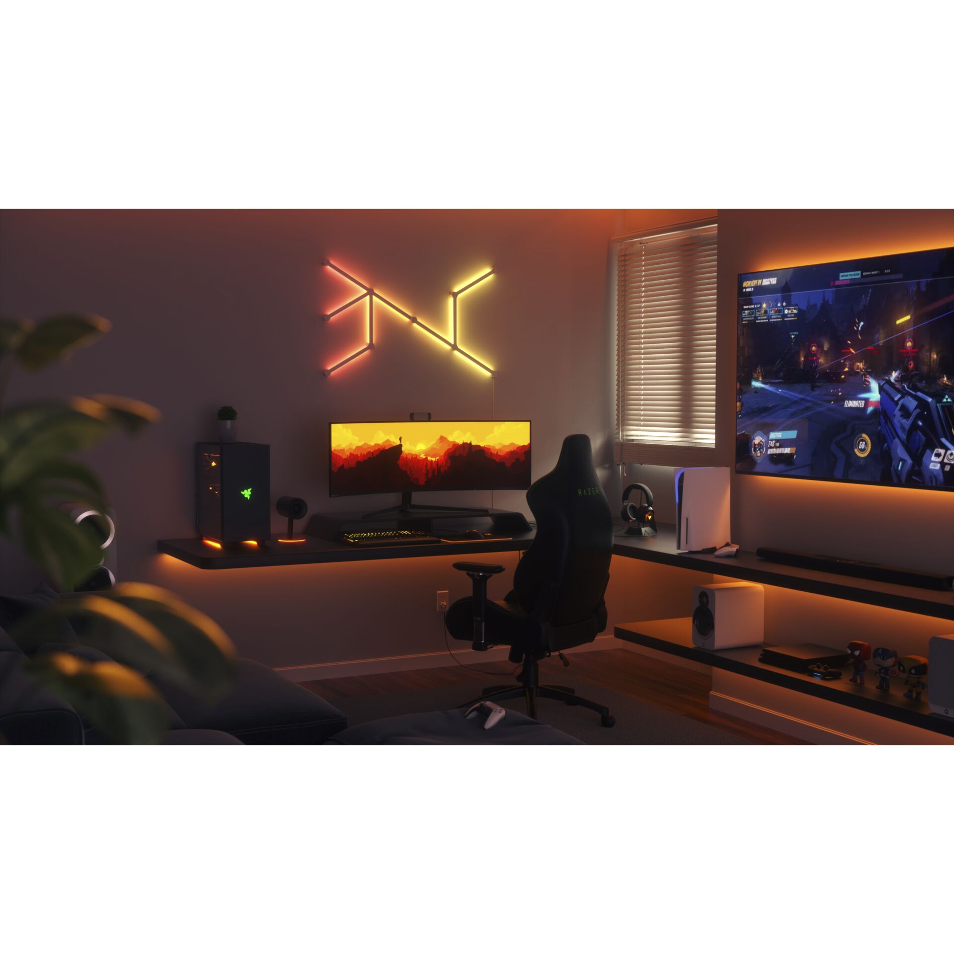 Die Nanoleaf Lines sind smarte LED-Lichtleisten mit Hintergrundbeleuchtung, die sich durch ein modulares System zu individuellen Designs miteinander verbinden lassen. So wird durch die Auswahl von über 16 Millionen Farben jeder Raum mit farbwechselnden Lichtshows zum Leben erweckt und auf einzigartige Weise beleuchtet. Die Steuerung der Lines erfolgt per Nanoleaf-App, direkt über die integrierte Steuereinheit oder über Sprachassistenten wie Siri, Google und Alexa.