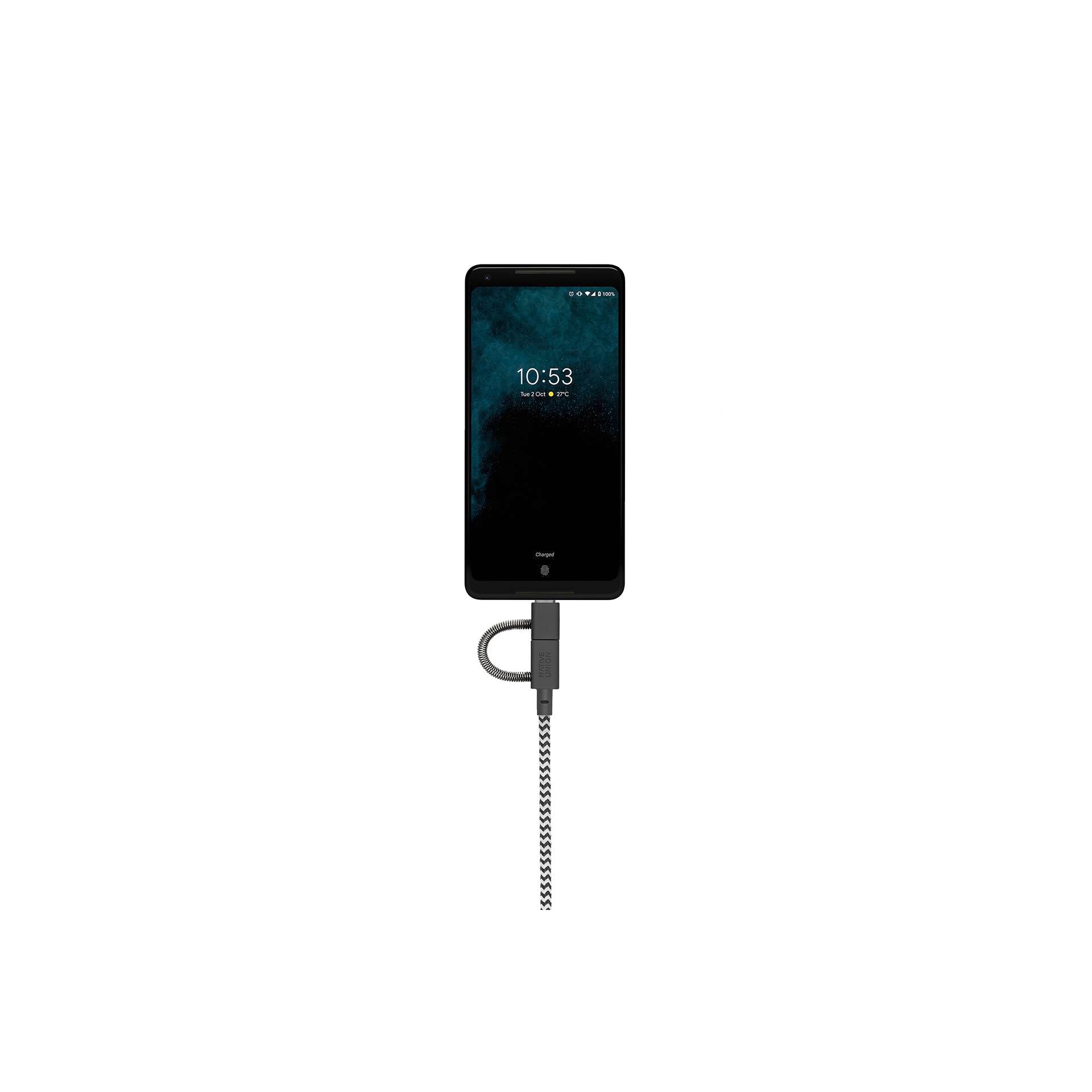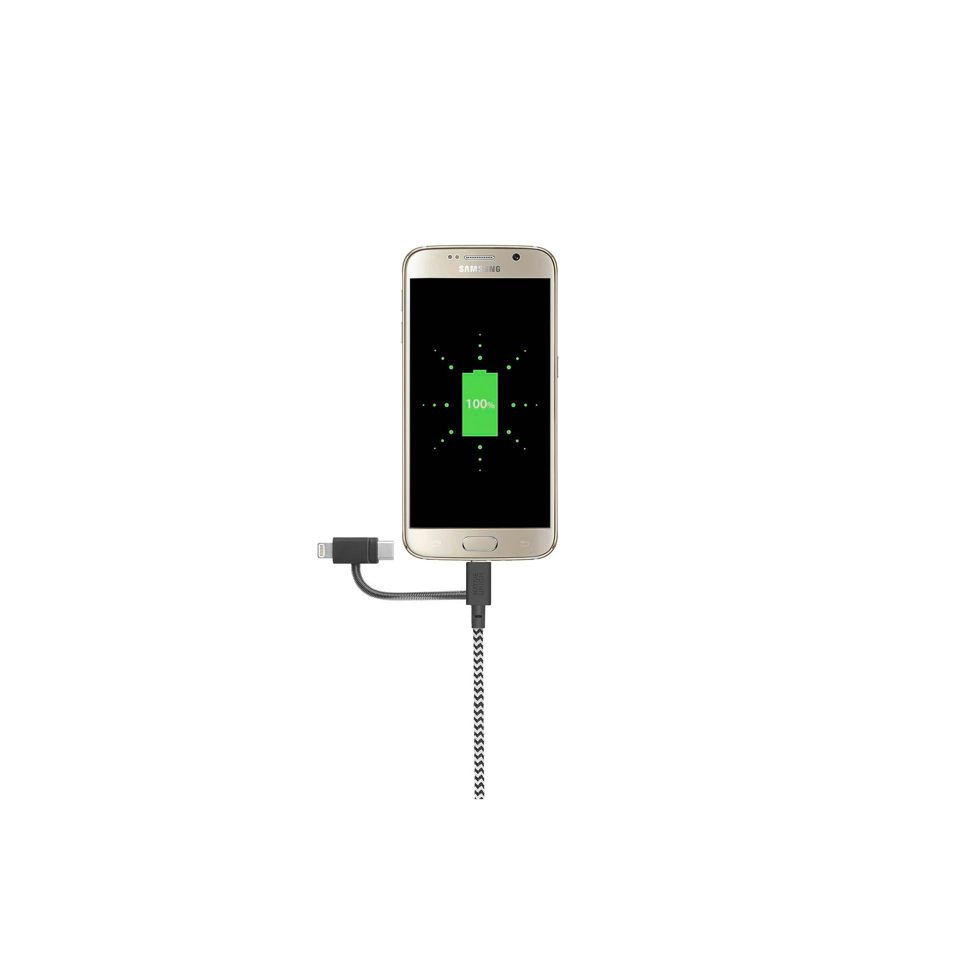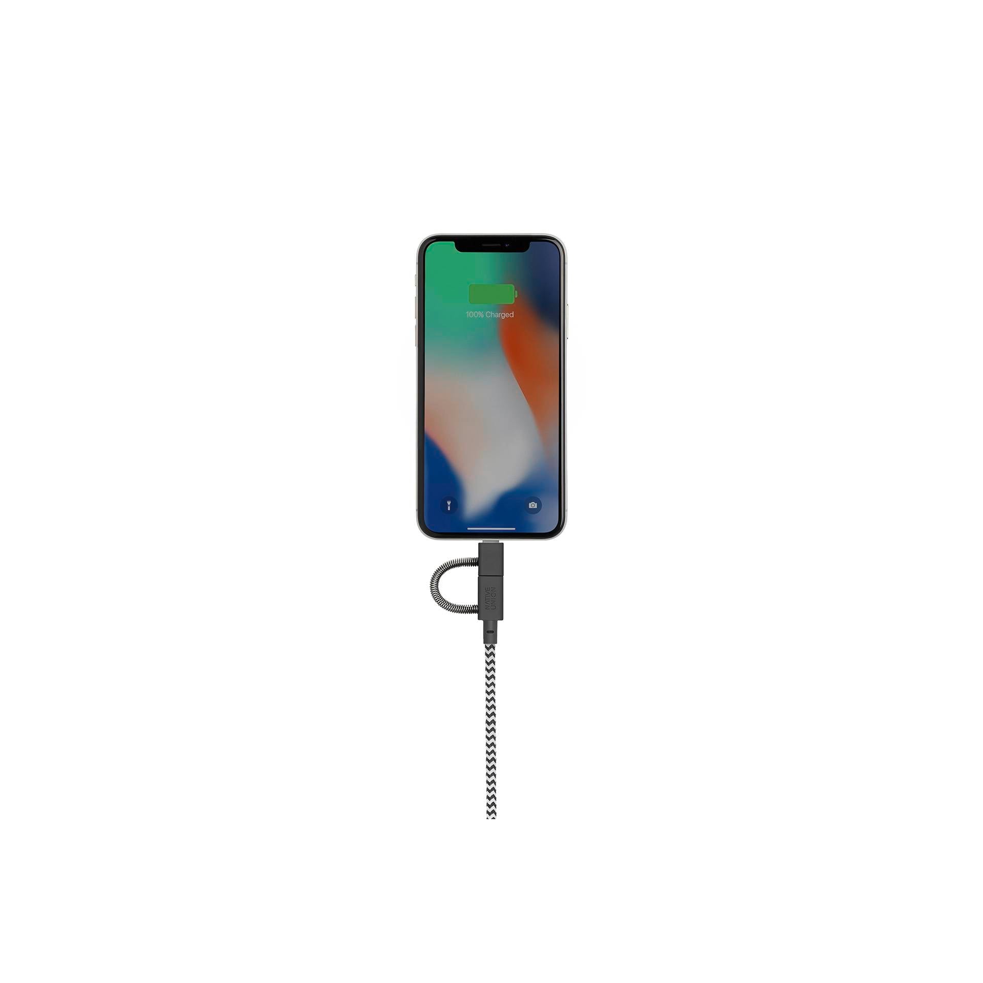 - Strapazierfähiges Ladekabel mit drei verschiedenen Anschlüssen