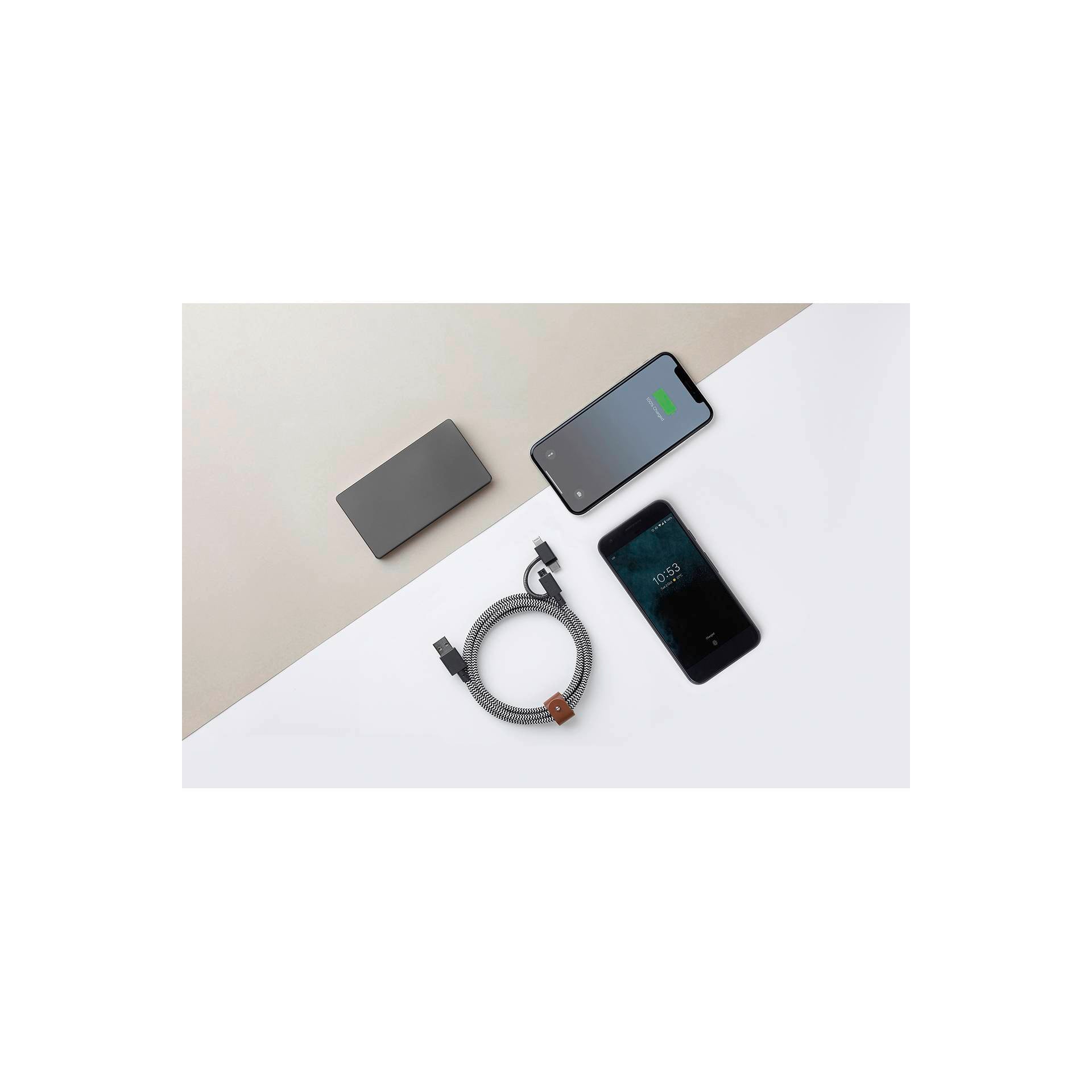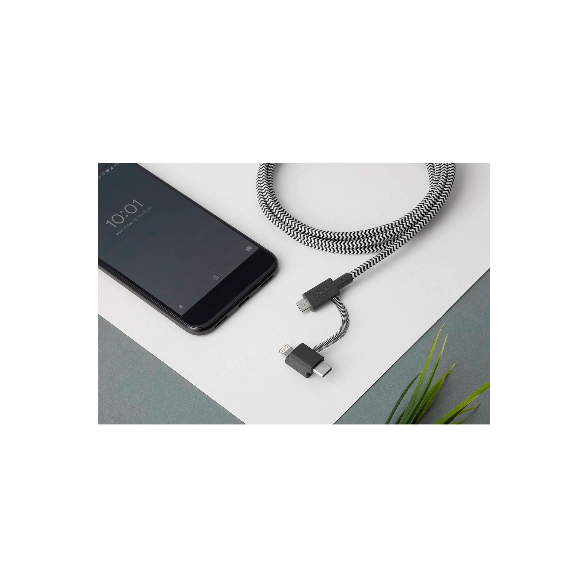 Dank des Native Union Belt Cable Universal muss nun nicht mehr für jedes Gerät ein eigenes Ladekabel benutzt werden. Das universale Ladekabel besitzt auf einer Seite einen USB-A-Anschluss und auf der anderen Seite ist es mit gleich drei verschiedenen Anschlussmöglichkeiten ausgestattet: USB-C, Lightning und Micro-USB. Durch seine verstärkte Struktur ist das Kabel besonders strapazierfähig. Es ist mit einem integrierten Kabelbinder aus Echtleder ausgestattet und lässt sich so leicht aufwickeln und verstauen. Damit ist das Kabel der perfekte Begleiter für unterwegs. Das Ladekabel hat eine Länge von 2 Metern.