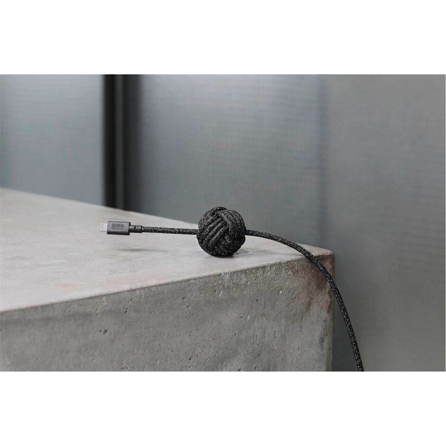 Das Native Union Night Cable macht dem endlosen Suchen nach dem Ladekabel ein Ende. Das an dem Ladekabel angebrachte Gewicht im Design eines Knotens, lässt sich an beliebige Stellen des Ladekabels bewegen und stellt dann sicher, dass das Ladekabel an der Stelle liegen bleibt, wo es hingelegt wurde. Dank der hochwertigen Materialien und verstärkten Struktur ist das Ladekabel außerdem besonders robust. Das Night Cable unterstützt schnelles Laden und garantiert mit drei Metern Länge besonders viel Flexibilität. So kann das iPhone auch während des Ladevorgangs bequem genutzt werden. Das Kabel ist MFI- und USB-IF-zertifiziert.