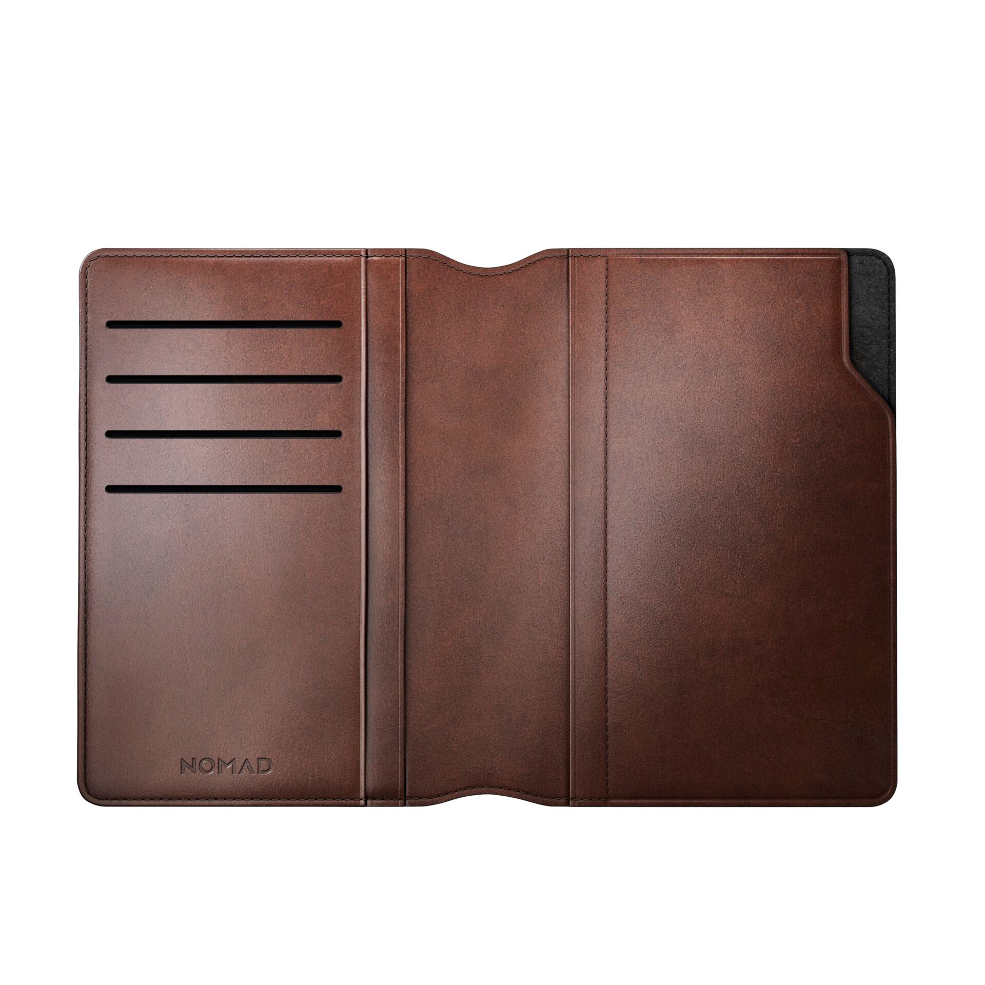 Mit vier Kartenfächern und drei größeren Fächern, darunter ein spezielles Fach für den Reisepass und eine praktische Lasche für den schnellen Zugriff auf die Boardkarte, bietet die Brieftasche von Nomad ausreichend Platz und Organisation.