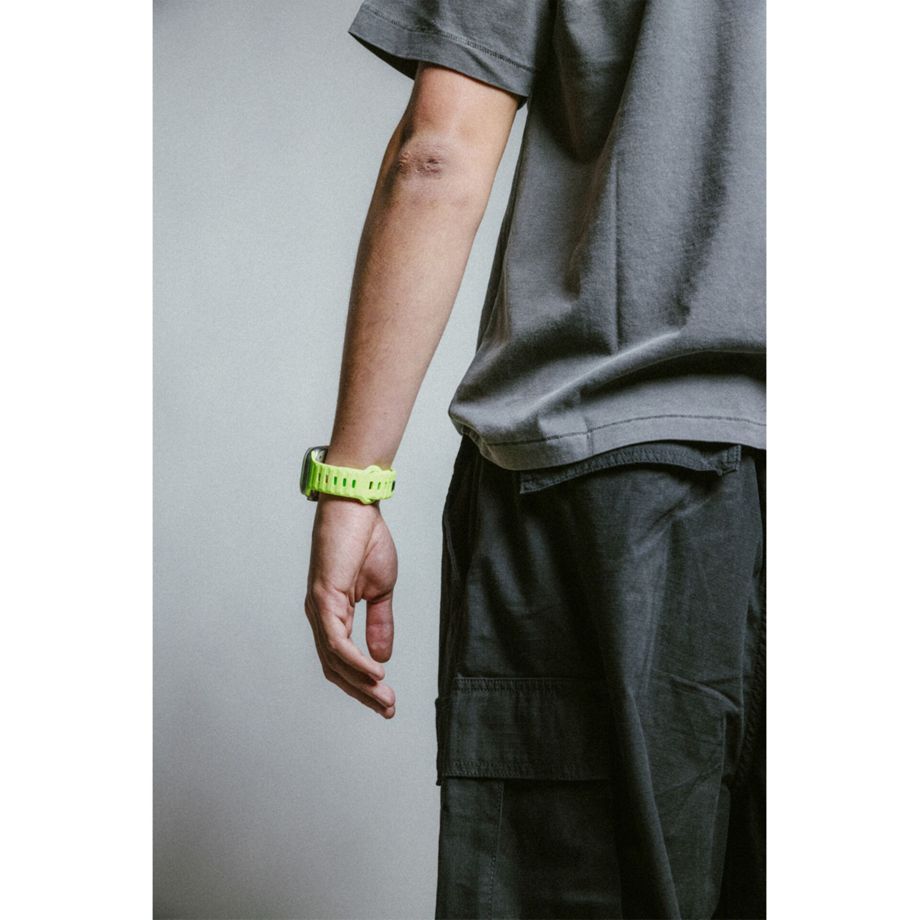 Das moderne und sportliche Apple-Watch-Armband in leuchtenden Farben: Das Nomad Sport Band Glow verleiht jeder Apple Watch einen modernen und stilvollen Look. Dabei verwandelt sich das tagsüber unauffällige hellgrüne Armband im Dunkeln zum echten Hingucker mit Leuchteffekt im innovativen Design. Das Uhrenarmband hat ein leichtes und atmungsaktives Design, das aus einem weichen, flexiblen Fluorkautschuk für besonders hohen Tragekomfort besteht. Das Material kombiniert Komfort, Haltbarkeit und sicheren Halt über den Pin-Verschluss. Dank der inneren Belüftungskanäle auf der Unterseite ist das Armband atmungsaktiv. Damit ist es ideal für intensive Workouts und den alltäglichen Gebrauch.