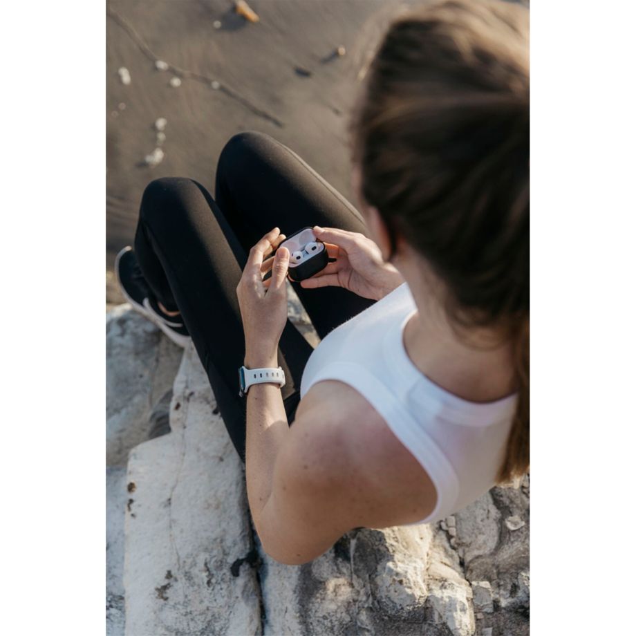 Das Nomad Sport Band Slim verleiht jeder Apple Watch einen modernen und sportlichen Look und ist dabei ideal für intensive Workouts sowie den alltäglichen Gebrauch. Das Sportarmband hat ein leichtes und atmungsaktives Design, das aus einem weichen, flexiblen Fluorkautschuk für hohen Tragekomfort besteht. Es ist besonders schlank und deshalb auch für schmale Handgelenke geeignet, besitzt aber dennoch die Widerstandsfähigkeit eines größeren Bands. Das Material Fluorkautschuk ist ein Fluorelastomer, das antimikrobiell wirkt und ganz einfach mit Seife und Wasser gereinigt und desinfiziert werden kann. Das Material gewährleistet ein ideales Gleichgewicht zwischen Komfort und Haltbarkeit. Die Flexibilität von FKM sorgt außerdem für ein angenehmes Tragegefühl. Dank der inneren Belüftungskanäle auf der Unterseite ist das Armband atmungsaktiv.