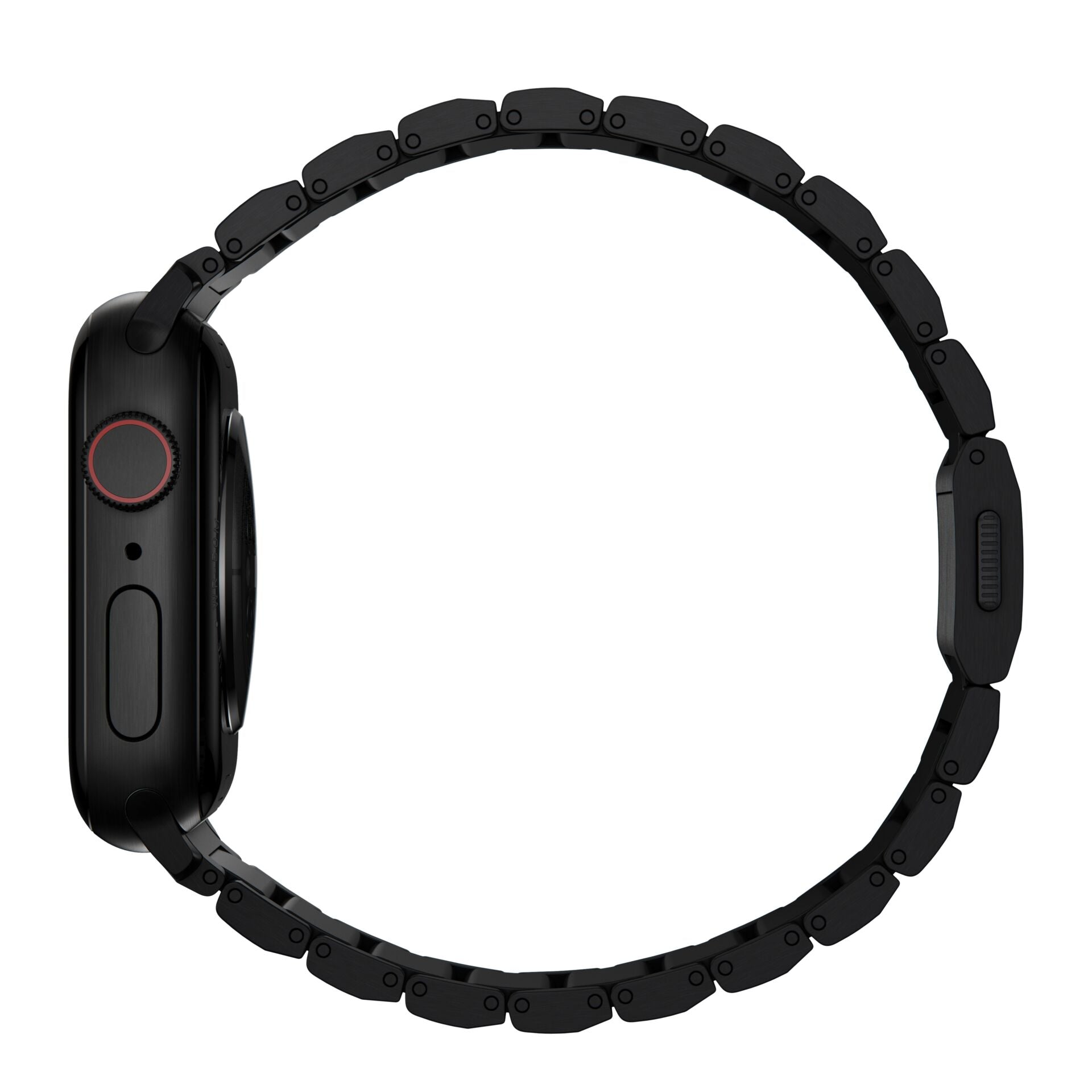 Der Nomad Strap Titanium V2 ist ein robustes und strapazierfähiges Uhrenarmband für die Apple Watch. Das klassische Design gibt der Apple Watch ein elegantes und doch alltagstaugliches Aussehen. Das Armband ist aus Grad 5 Titan gefertigt, welches auch in der Luft- und Raumfahrtindustrie genutzt wird. Es ist besonders leicht und gleichzeitig auch sehr robust. Zusätzlich ist es überzogen mit diamantähnlichen Kohlenstoffschichten (DLC), die gegen Kratzer schützen. Die Schnalle des Armbandes lässt sich magnetisch verschließen. Die starken Neodym-Magneten halten das Uhrenband fest zusammen und ermöglichen gleichzeitig ein einfaches Öffnen. Einzelne Glieder des Armbandes lassen sich mit dem mitgelieferten Werkzeug bequem entfernen, um die Größe des Uhrenarmbands anzupassen.