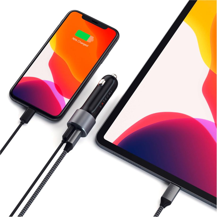 Satechis Type-C Kfz-Adapter ist der ideale Begleiter für den nächsten Roadtrip. Eingesteckt in den Zigarettenanzünder des Autos liefert er über den USB-C-Anschluss bis zu 60 Watt, um damit kompatible Laptops, Tablets und Smartphones schnell aufzuladen. Gleichzeitig lässt sich ein weiteres Gerät über den USB-A-Anschluss mit 12 Watt mit Strom versorgen. Das kompakte Autoladegerät ist mit einem Schutz gegen Kurzschlüsse und Überhitzung ausgestattet und sorgt so für sicheres Laden unterwegs. Optisch fügt sich das Design aus Aluminium in jedes Autointerior perfekt ein.