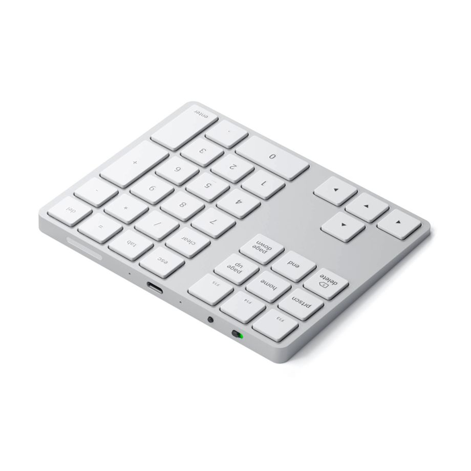 Mit dem Extended Wireless Keypad von Satechi kann jede Tastatur im Handumdrehen um einige nützliche Funktionen erweitert werden. Die Tastaturerweiterung wird per Bluetooth mit dem Tablet, Laptop oder Computer verbunden. Das Keypad verfügt über einen Ziffernblock, Navigations-Pfeile und Funktionstasten für intuitive MacOS-Tastaturkurzbefehle. Da die Funktionstasten für den Mac designt wurden, sind diese nicht mit allen Windows-Computern kompatibel. Die Tastatur wird über einen USB-C-Anschluss geladen und kann auch während des Ladevorgangs verwendet werden. Dank des schlichten, eleganten Aluminium-Designs passt die Tastaturerweiterung perfekt an jeden Arbeitsplatz.