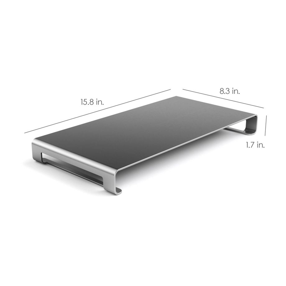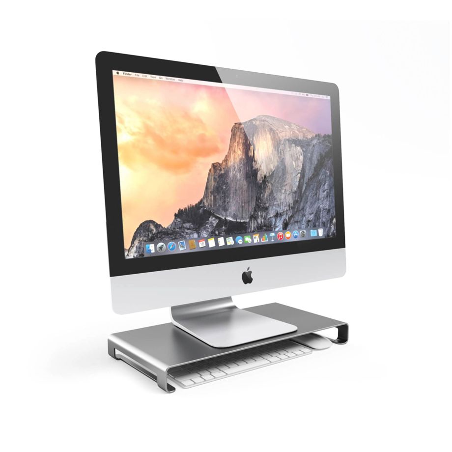 Der Monitorständer von Satechi vereint Funktionalität und Design: Eine Erhöhung des Laptops oder des Monitors schafft nicht nur zusätzlichen Platz auf dem Schreibtisch, sondern führt auch zu einer aufrechteren Sitzhaltung und beugt so Nackenverspannungen vor. Unterhalb des Monitor-Ständers können zum Beispiel eine Tastatur, die Computermaus, ein Tablet, Unterlagen oder ein Schreibblock verstaut werden. Durch sein schlichtes und edles Aluminium-Design passt die Erhöhung optisch perfekt zu Apple Computern. Dank der soliden Aluminiumlegierung kann der Monitor-Ständer bis zu 14kg Gewicht tragen.