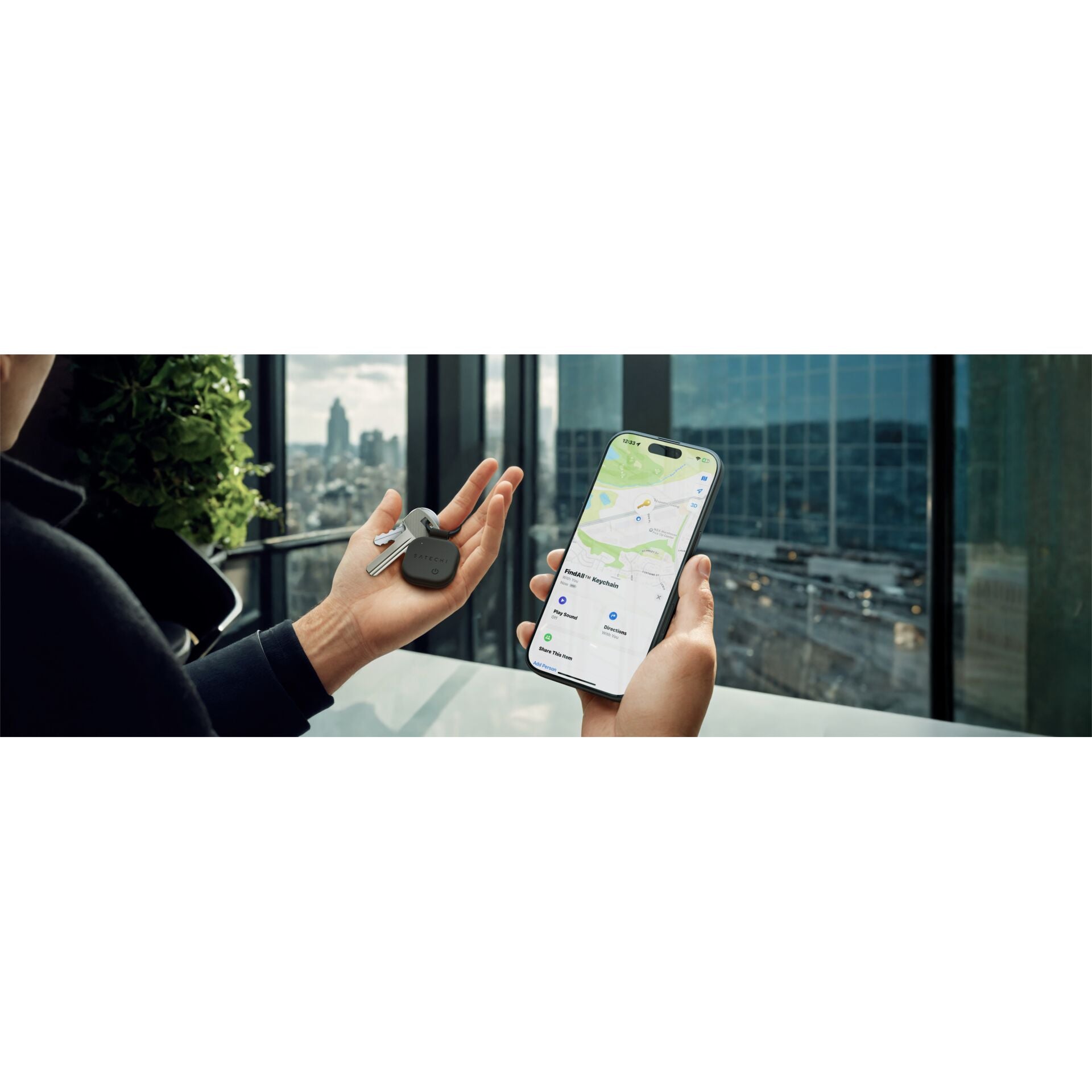 Die kabellos aufladbare Batterie ermöglicht eine komfortable Energieversorgung ohne Wechselakkus. In Kombination mit Bluetooth 5.4 LE bietet das Gerät eine stabile Verbindung und präzise Ortung. Die Integration in das Apple Find My-Netzwerk erlaubt es, den Standort über iPhone, iPad oder Mac zu verfolgen, Benachrichtigungen bei Trennung zu erhalten und eine Navigation zum verlorenen Objekt zu starten.